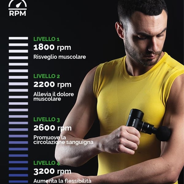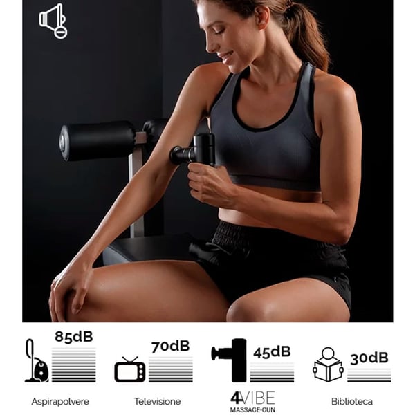 La 4 Vibe Massage Gun ofrece 4 niveles de velocidad, lo que la hace adecuada para adaptarse a diferentes necesidades. Desde un masaje suave para relajar los músculos hasta un tratamiento profundo para aliviar tensiones después de una intensa actividad física.