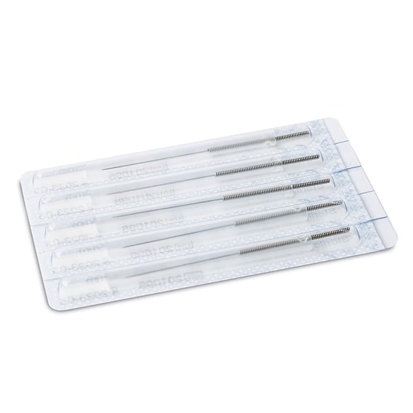 - Afilado en "punta de trigo" y con recubrimiento en silicona para una inserción indolora en la piel