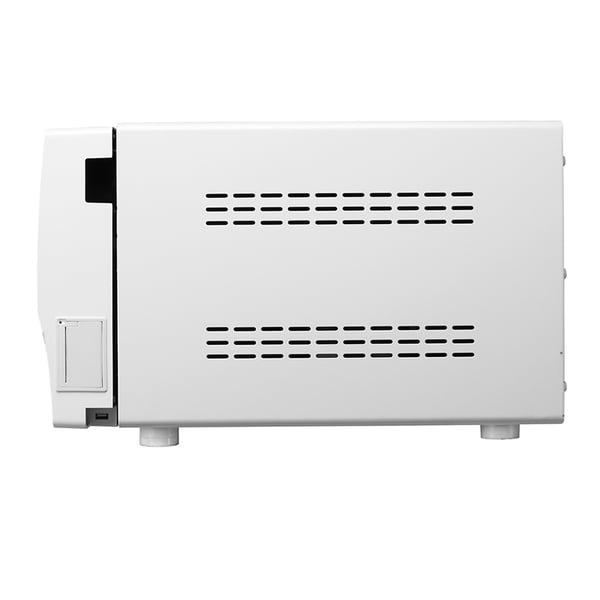 Esta versión de 12 litros, se ajusta a la Directiva CE 1023, ISO 13485 relativa a los pequeños esterilizadores de vapor. Además, cuenta con un generador de vapor por separado e innumerables opciones de seguridad. Si la unidad se sobrecalienta y supera la presión recomendada, el autoclave dejará de funcionar automáticamente por cuestiones de seguridad. En este apartado de seguridad, hay que destacar que el autoclave dispone de un tanque separado de aguas residuales para recoger el agua sucia y asegurar que las tuberías internas se mantienen sempre impolutas.