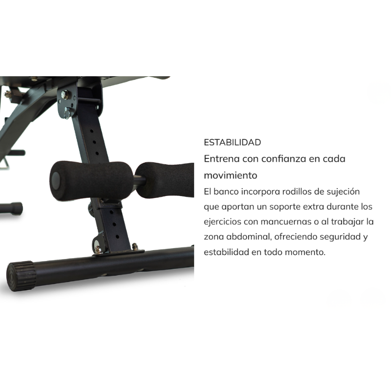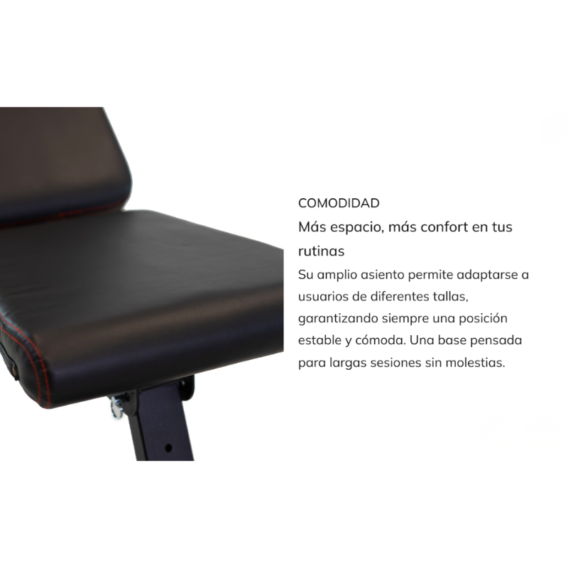 Su diseño robusto y estable proporciona una base segura para el levantamiento de peso, mientras que el acolchado ergonómico mejora la comodidad durante las sesiones de entrenamiento. Es una opción práctica para usuarios que desean equipar un gimnasio doméstico con un banco funcional y compacto.