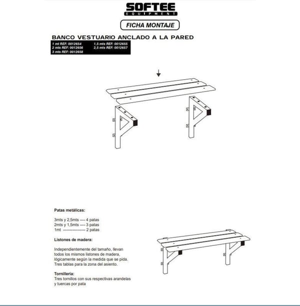 - Compuesto por escuadras metálicas de sección 35 mm. para anclar a la pared y tablas de madera de sección 90 x 20 mm.