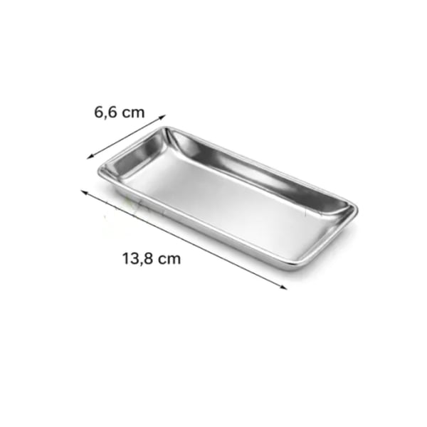 La bandeja grande de acero inoxidable (6,6 × 13,8 cm) es un accesorio diseñado para la organización y manipulación segura de agujas e instrumental médico pequeño durante procedimientos de acupuntura, fisioterapia o tratamientos sanitarios.