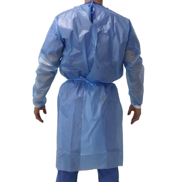 Batas desechables impermeables de 52 gramos. Se trata de un EPI de categoría III que consta de puños de algodón y cierra trasero. Asimismo, está libre de látex.