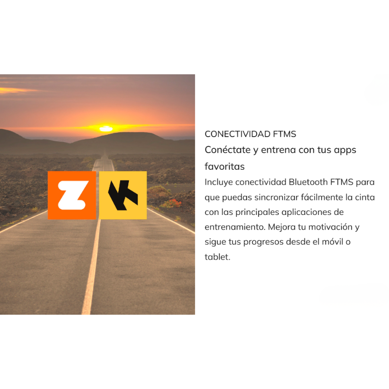 - Conectividad Bluetooth FTMS compatible con Zwift y Kinomap.