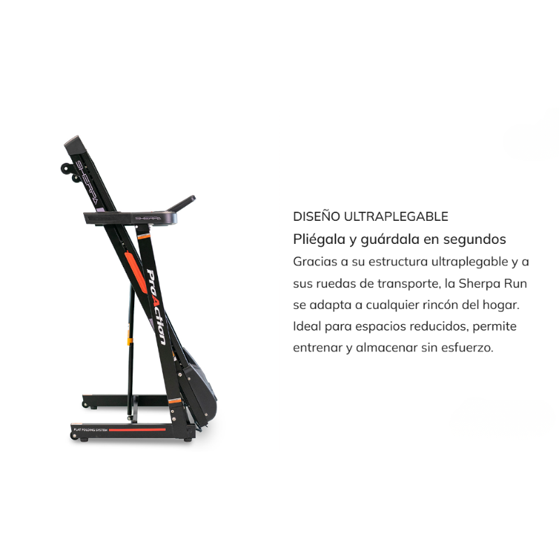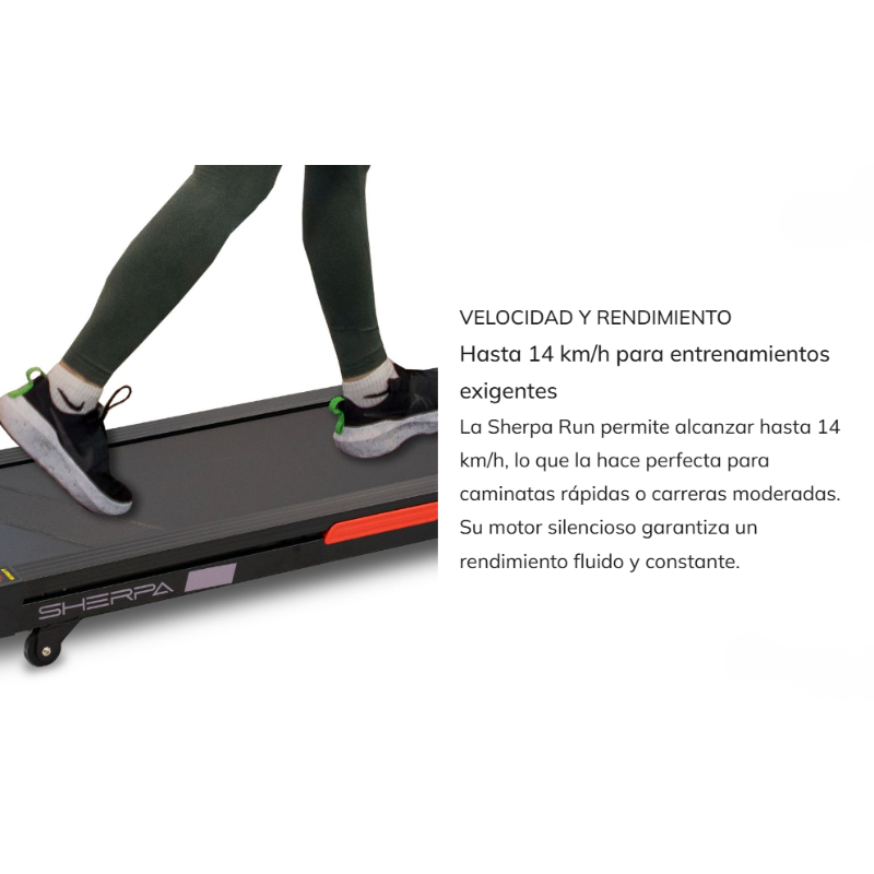 La Sherpa Run G6319 es una cinta de correr doméstica pensada para entrenamientos regulares en casa. Destaca por su diseño compacto y ultraplegable, su conectividad Bluetooth FTMS y una velocidad máxima de 14 km/h, lo que la hace adecuada para caminatas rápidas y carrera moderada. Está orientada a usuarios que buscan una solución funcional para espacios reducidos sin renunciar a conectividad con aplicaciones de entrenamiento.
