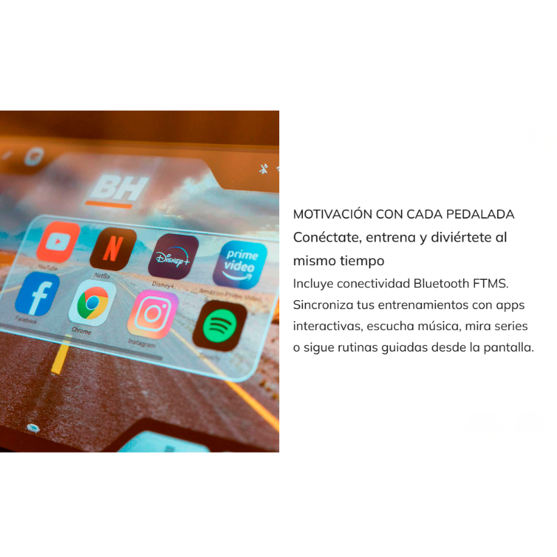 - Conectividad Bluetooth FTMS compatible con Zwift y Kinomap.