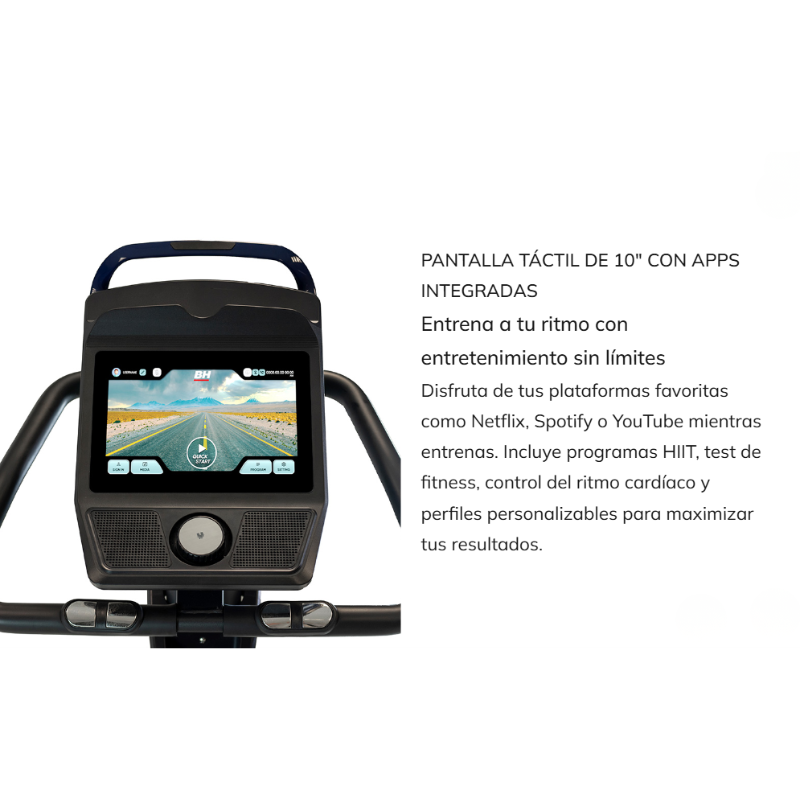 La BH Fitness Carbon Bike RS Multimedia H8705BTFT es una bicicleta de ciclo indoor de alta gama diseñada para ofrecer entrenamientos intensivos en casa con una experiencia tecnológica avanzada. Destaca por su pantalla táctil TFT multimedia, que permite acceder a aplicaciones de entretenimiento y plataformas de entrenamiento virtual mientras se realiza el ejercicio.