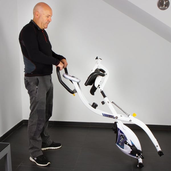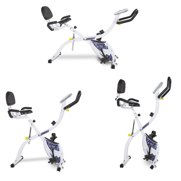 ¡Bicicleta estática plegable 3 en 1! Máxima versatilidad en un mínimo espacio. La X-Tri 2 permite entrenar en 3 diferentes posiciones según tus necesidades, pudiendo elegir la postura más cómoda (vertical, semi-reclinada y reclinada).