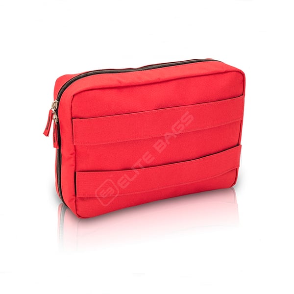- Dos bolsillos planos, uno de ellos con cremallera, para guantes, gasas y demás apósitos.