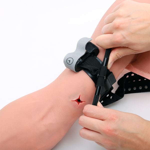 Entrenador de control de hemorragias en la extremidad superior con simulación realista de heridas y sangrado. Mejore la formación en cuidados prehospitalarios mediante un entrenamiento práctico con instrucciones de control de hemorragias que incluye relleno de heridas y aplicación de torniquetes. Este simulador resulta especialmente adecuado para capacitación en Cuidado de Heridos en Combate Táctico (TCCC) y víctimas civiles.