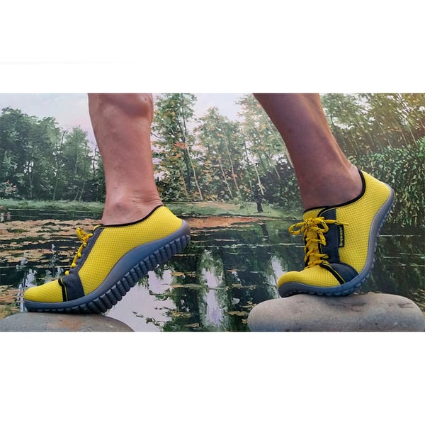 La suela exterior patentada es extremadamente flexible, se adapta a cualquier superficie y permite que el caminar descalzo sea natural. Además de esto la suela es antideslizante y lo suficientemente fuerte como para soportar los elementos, incluso afilados o puntiagudos. El material superior consta de un tejido de malla transpirable, muy confortable que permite su uso sin calcetines si así se desea.