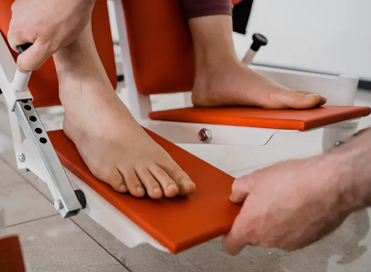 - Apoyapiés independientes proclivio/declivio: Ajuste de +/- 15° para mayor comodidad del paciente.