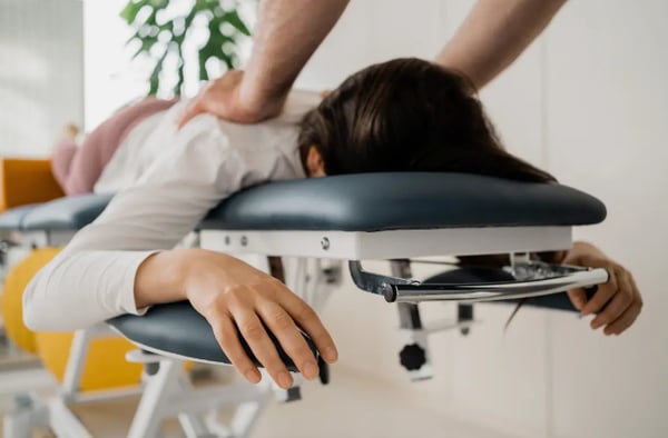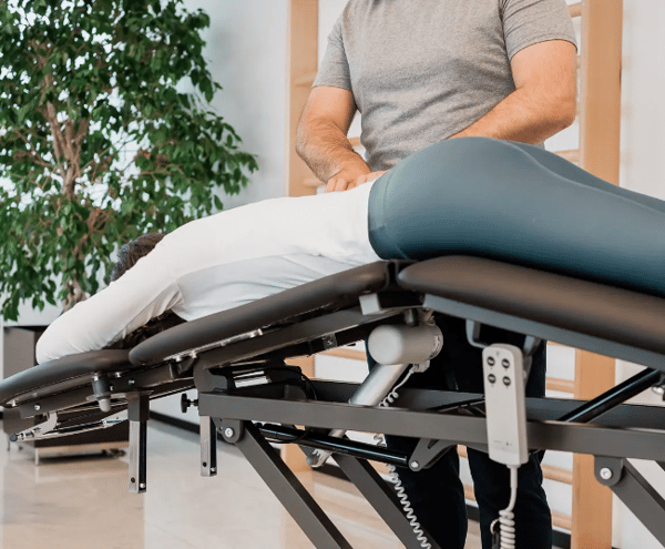 Camillas de cinco cuerpos para osteopatía con regulación eléctrica de la altura y de cifosis. Elevación rápida en 43 segundos.