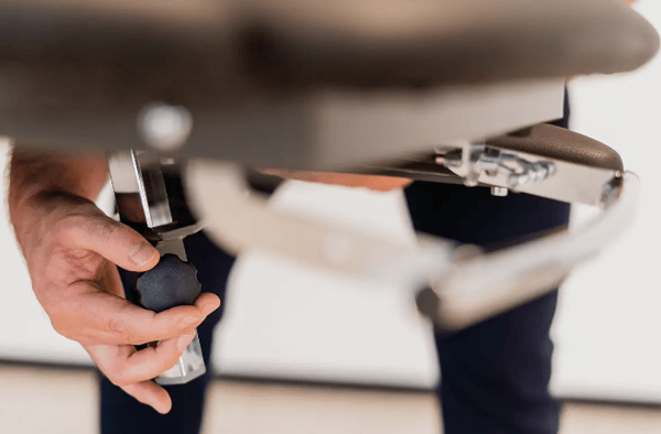 - Reposabrazos regulables en altura y giratorios hasta 100º para reducir la tensión en omóplatos y mejorar el confort del paciente en todas las posiciones.