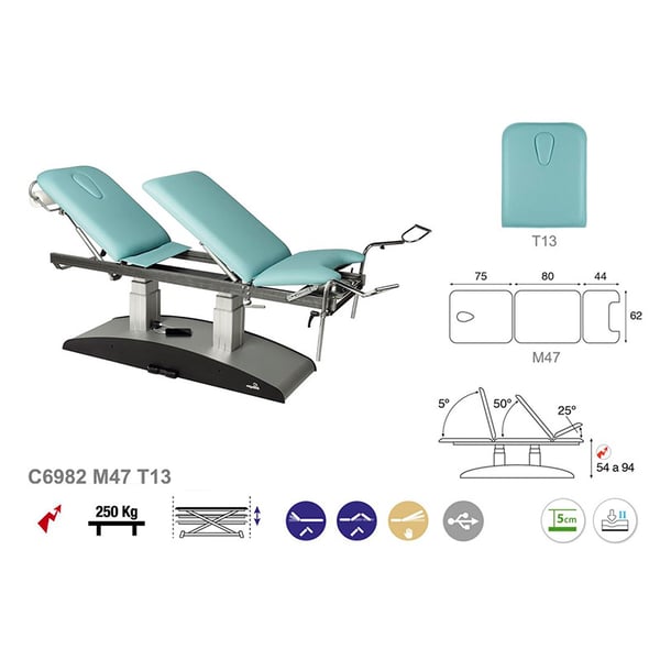 Camilla eléctrica especializada en ginecología y exploración de dos columnas, tres cuerpos y estribos incluidos. Tiene un diseño sencillo, moderno y funcional. Otra de las grandes ventajas que aporta la camilla es su versatilidad ya que resulta ideal para numerosos campos: fisioterapia, osteopatía, medicina general, estética, tatuajes. Una solución perfecta para cualquier profesional de la salud y la estética.