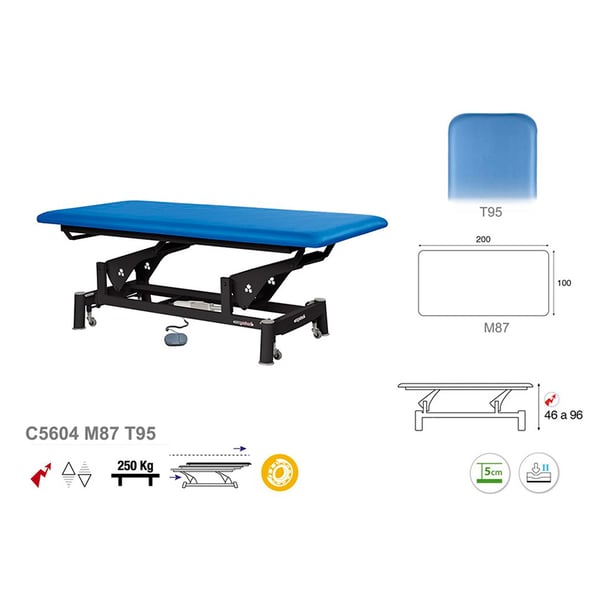 Camilla eléctrica Ecopostural, tipo Bobath, ideal para especialidades: un cuerpo con estructura de biela negra y cabezal T95 (100 x 200 cm)