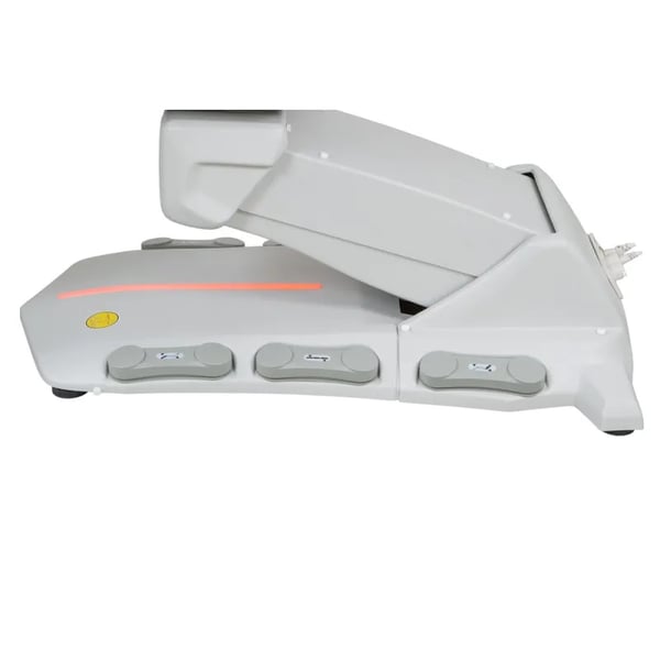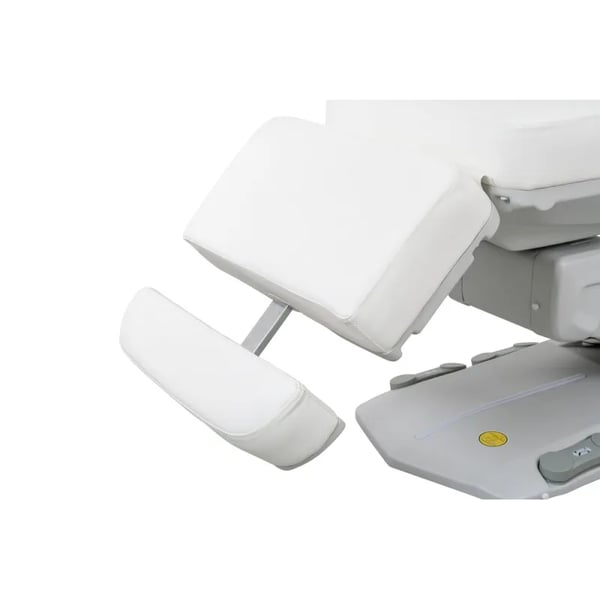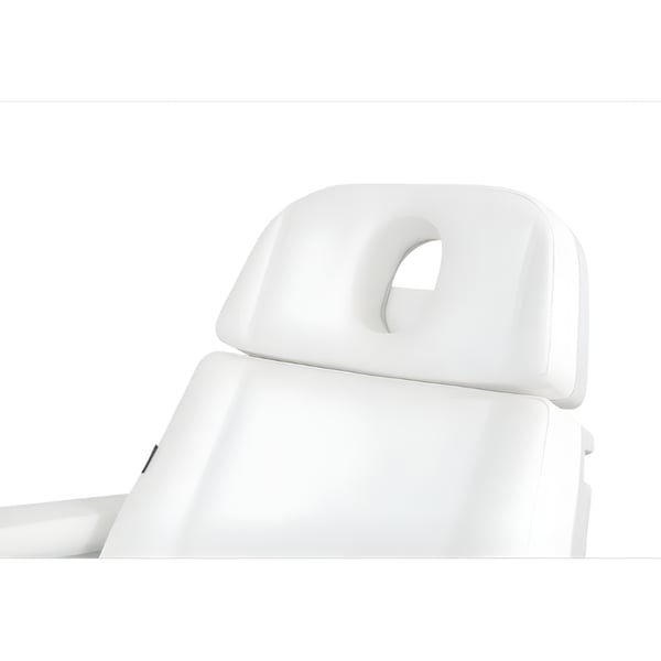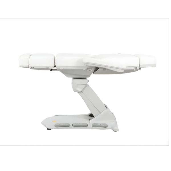 Este modelo incorpora sistema de calefacción integrado con temperatura regulable desde el mando, proporcionando una experiencia de tratamiento más confortable, especialmente en sesiones prolongadas. Su diseño incluye reposabrazos giratorios, reposacabezas extensible y reposapiés extensible, permitiendo una adaptación precisa a cada cliente.