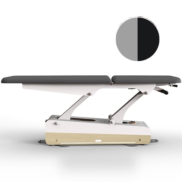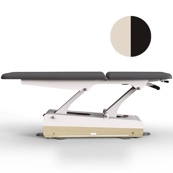 Camilla eléctrica de fisioterapia Swop 2L Pro Physio: dos cuerpos, cabecero largo, totalmente personalizable, tapizado sin costuras, un modelo que cambia las reglas del juego