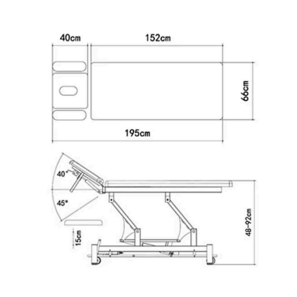 La camilla eléctrica Guth Coinfycare es una solución profesional diseñada para clínicas de estética, fisioterapia y centros de bienestar que buscan funcionalidad, confort y diseño contemporáneo. Equipada con tres motores eléctricos, permite ajustar la altura, la inclinación del respaldo y del módulo central, facilitando una amplia variedad de tratamientos y garantizando una experiencia ergonómica tanto para el paciente como para el profesional. Su tapizado en poliuretano (PU) de alta calidad es fácil de limpiar y resistente al desgaste, asegurando durabilidad y mantenimiento sencillo. Además, cuenta con reposabrazos ajustables y extraíbles, así como un agujero facial con cojín postural, adaptándose a diversas necesidades terapéuticas.