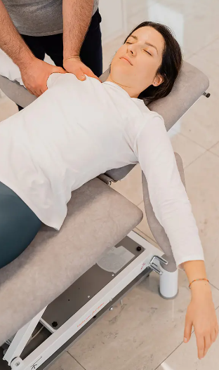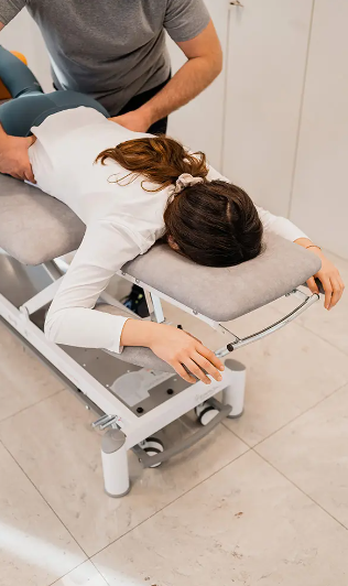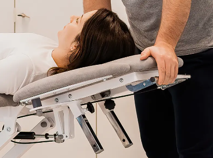 - La palanca práctica para la inclinación del cabezal permite alcanzar diferentes inclinaciones de hasta +70º y -20º, para encontrar la posición ideal donde practicar diferentes manipulaciones cervicales.