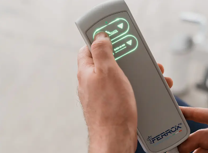 - Mando a distancia con bloqueo de seguridad para regulación de altura (salvo versiones con barra perimetral accionable con el pie).
