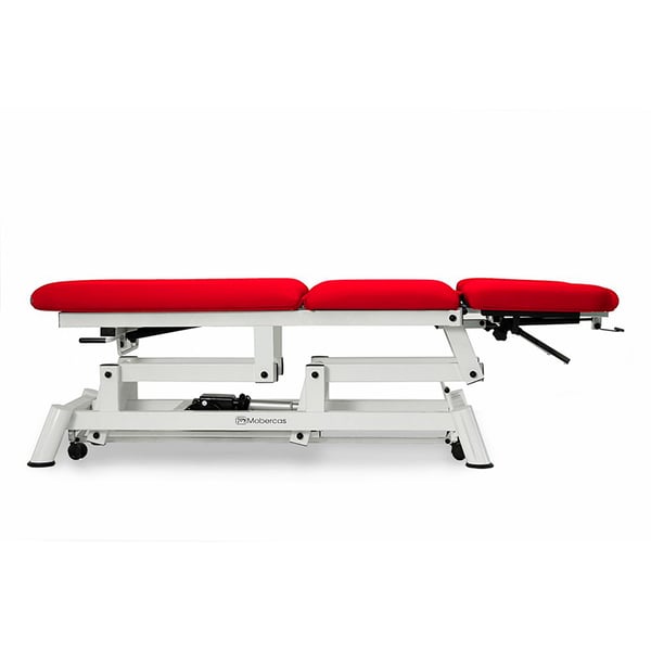 Asimismo, dispone de ruedas escamoteables aptas para trasladar tramos cortos a los pacientes o movilizar la camilla para realizar el tratamiento. De igual forma, dispone de regulación en altura eléctrica con mando a distancia, gracias al motor elevador.