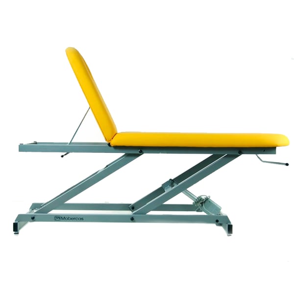Asimismo, tiene la opción de añadirle ruedas escamoteables aptas para trasladar tramos cortos a los pacientes o movilizar la camilla para realizar el tratamiento. De igual forma, dispone de regulación en altura eléctrica con mando a distancia, gracias al motor elevador.