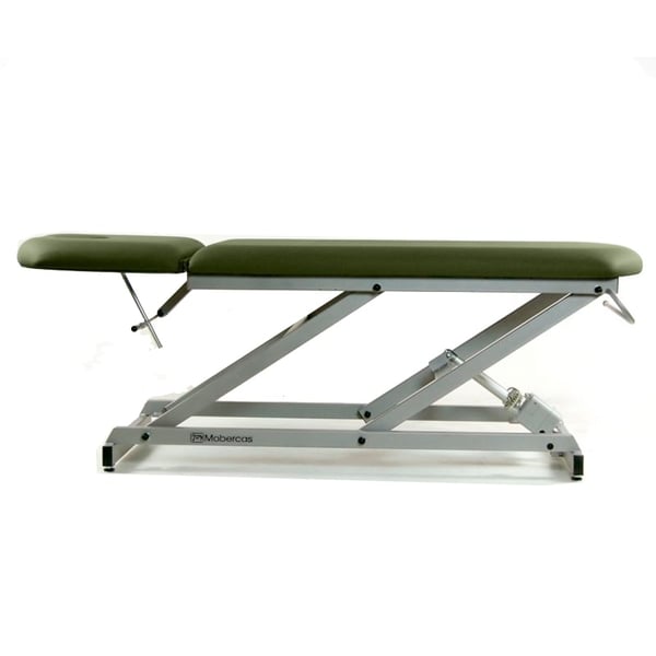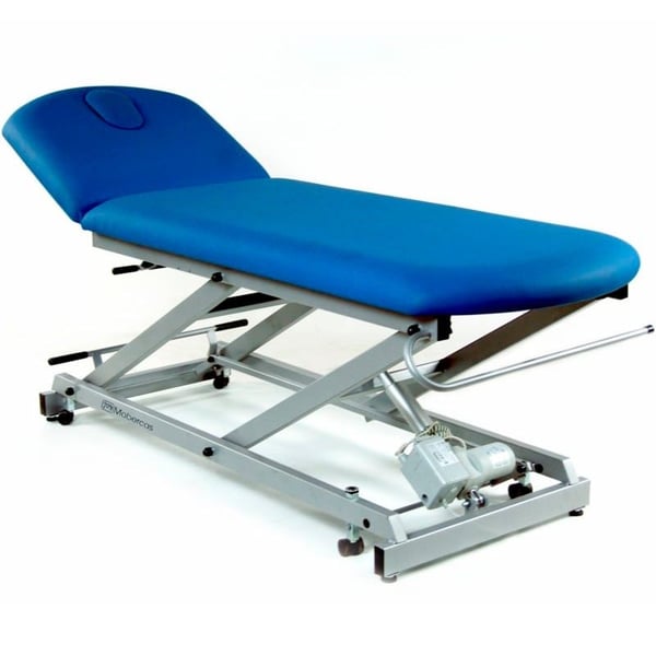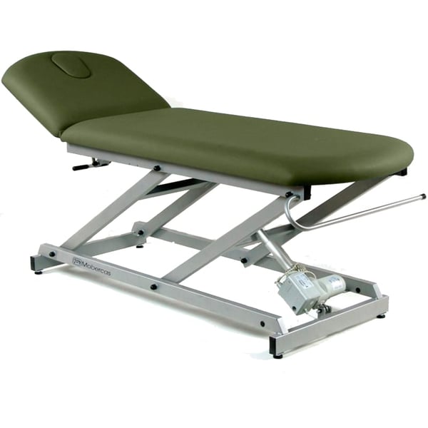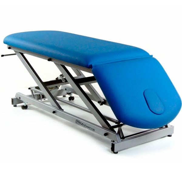 Asimismo, tiene la opción de añadirle ruedas escamoteables aptas para trasladar tramos cortos a los pacientes o movilizar la camilla para realizar el tratamiento. De igual forma, dispone de regulación en altura eléctrica con mando a distancia, gracias al motor elevador.
