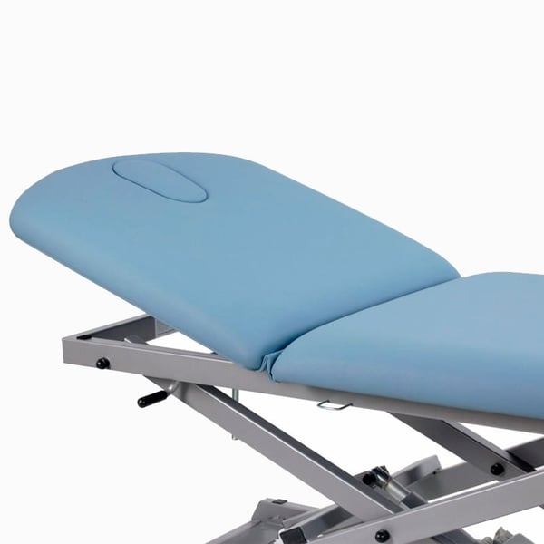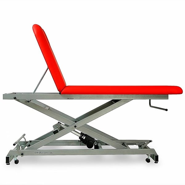 Camilla eléctrica de reconocimiento: dos cuerpos, con subida recta sin desplazamiento lateral, con portarrollos y tapón facial (dos modelos disponibles)
