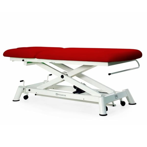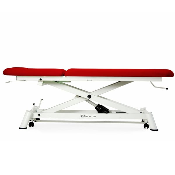 Además, dispone de ruedas escamoteables aptas para trasladar tramos cortos a los pacientes o movilizar la camilla para realizar el tratamiento.