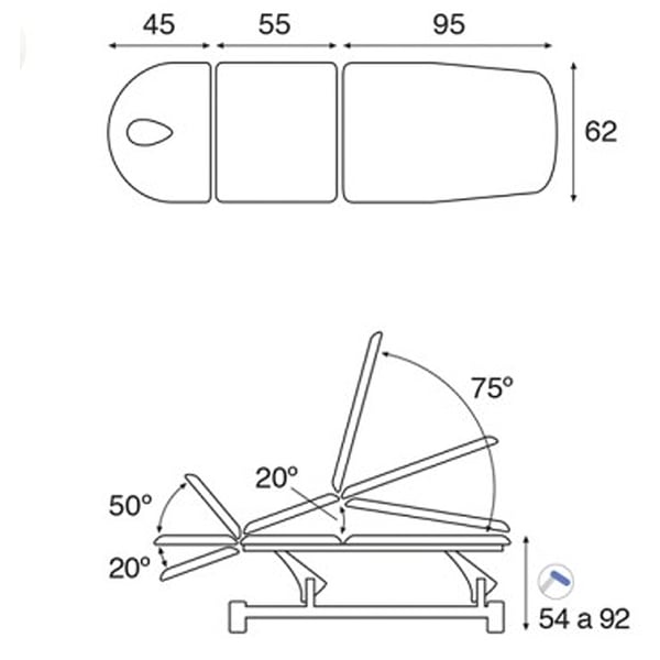 Camilla hidráulica Ecopostural multifuncional: tres cuerpos, con estructura de biela blanca y agujero facial (62 x 200 cm)