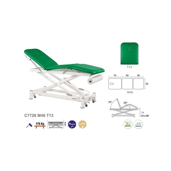 Innovadora camilla hidraúlica Ecopostural de tres cuerpos y con agujero facial destaca por su diseño sencillo, moderno y funcional. Otra de las grandes ventajas que aporta la camilla es su versatilidad ya que resulta ideal para numerosos campos: fisioterapia, osteopatía, medicina general, estética, tatuajes. Una solución perfecta para cualquier profesional de la salud y la estética.
