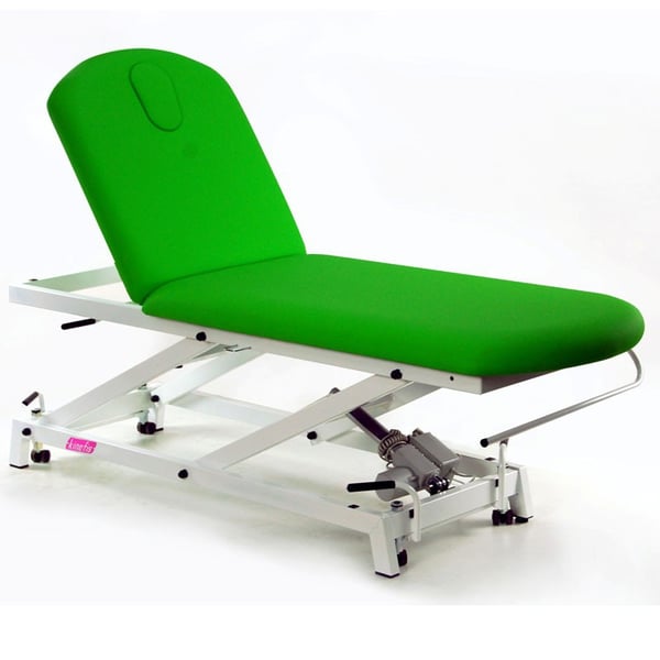 Camilla hidráulica Kinefis Opportunity: estructura de dos cuerpos, regulación en altura y respaldo regulable
