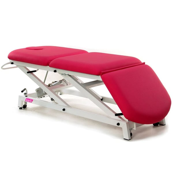 Camilla hidráulica Kinefis Opportunity: estructura de tres cuerpos, regulable en altura con respaldo y piecera regulable
