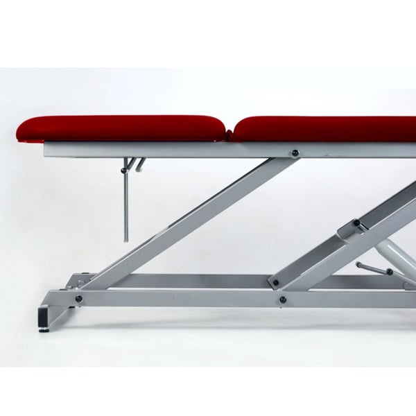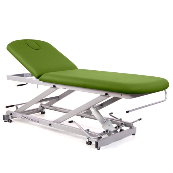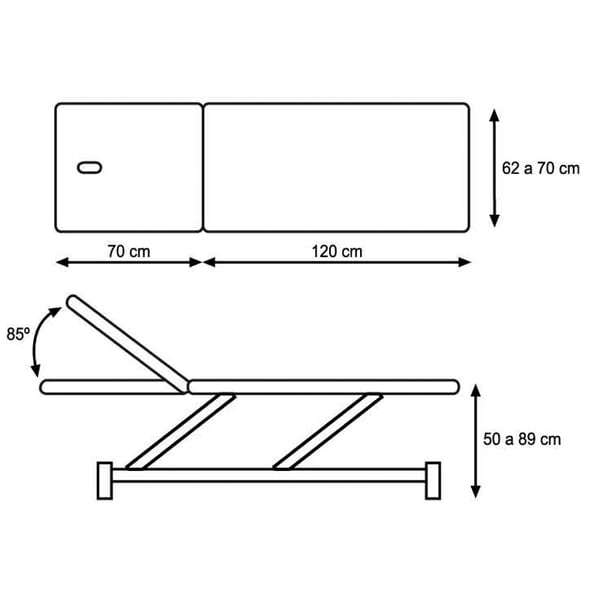 Se trata de una camilla hidráulica que dispone de regulación en altura por medio de un motor hidráulico, respaldo reclinable a través de palanca y orificio facial.