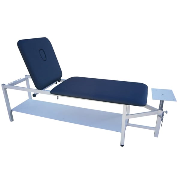 - Lecho 2 planos, respaldo abatible por enclave, orificio facial y tapa, cuerpo deslizante con manetas de fijación.