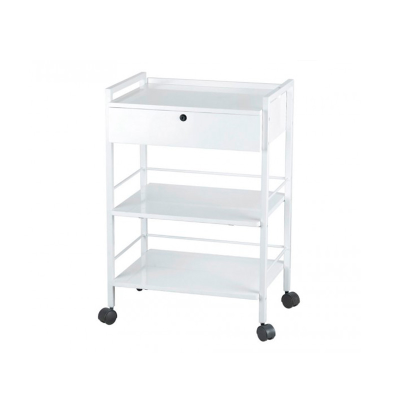 Carrito metálico blanco Easy: Equipado con un cajón con llave y tres estantes - OUTLET
