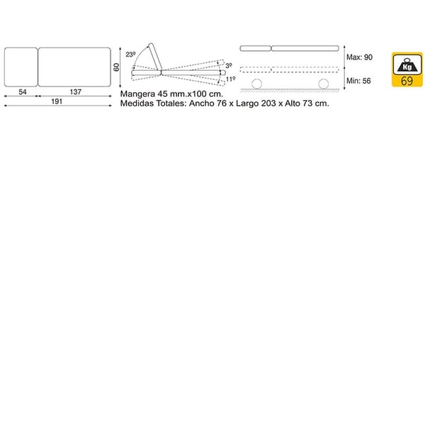 - Lecho de 2 cuerpos de compacto fenólico abatible por cremallera.