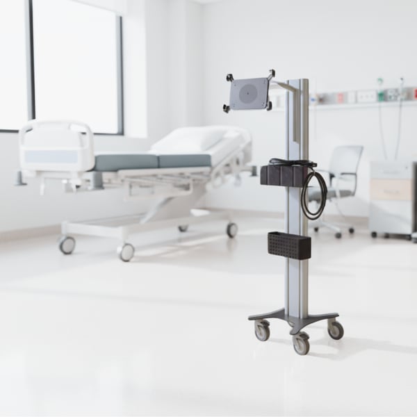 Carro de transporte para ecógrafos portátiles CHISON SonoEye CAR1P-KLS: Brazo semiflexible para tablet y soporte para sonda con silicona