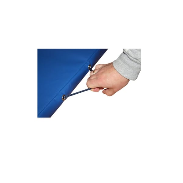 El cierre de la misma se realiza mediante una cremallera de seguridad protegida por doble solapa a un a largo y un ancho de la propia colchoneta. Incluye refuerzos en las esquinas, ollados metálicos para salida de aire y asas de quita y pon para su fácil traslado. El uso de la colchoneta se podrá hacer por ambos lados.