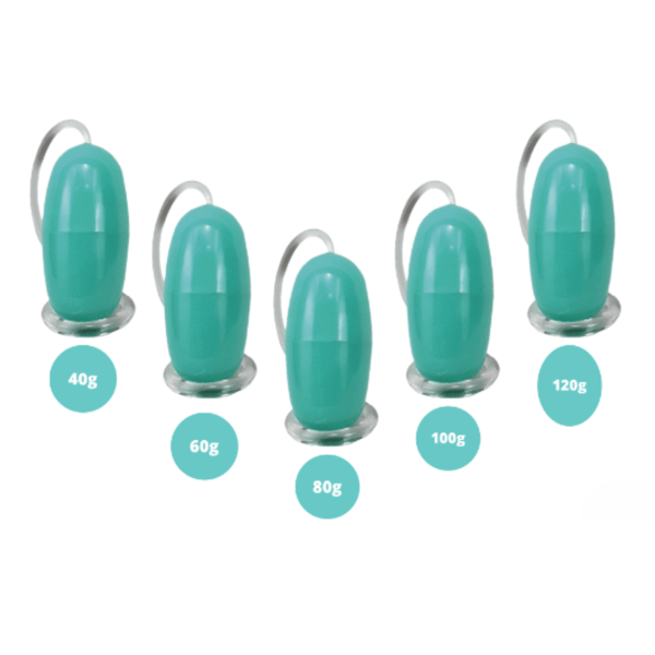 Existen 5 pesos diferentes: 40g, 60g, 80g, 100g y 120g, que pueden ser utilizados progresivamente para fortalecer los músculos. Los Conos de Peridell son más gruesos, lo que reduce las posibilidades de desplazamiento y caída, contribuyendo a un tratamiento más eficaz.