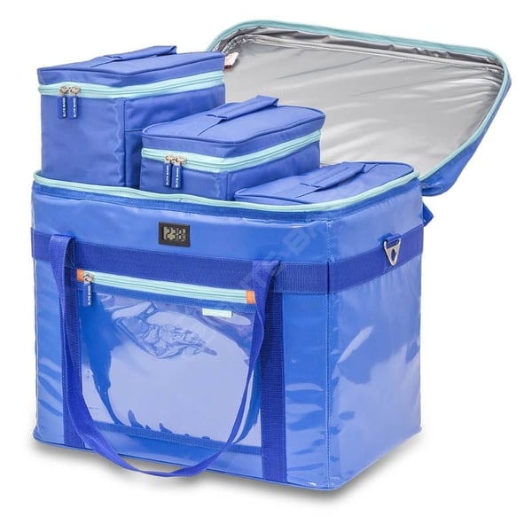 La bolsa isotérmica COOL'S de gran capacidad está diseñada para transportar de forma ordenada y bajo condiciones óptimas de temperatura hasta un total de 300 muestras de diagnóstico y 36 de botes de orina o heces. Su diseño cúbico y apilable permite transportar varios ejemplares a la vez.