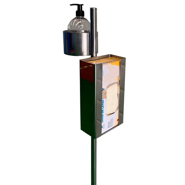 Dispensador higiénico vertical terminado en acero con soporte de gel y guantes o mascarillas + gel hidroalcohólico de regalo (500ml)
