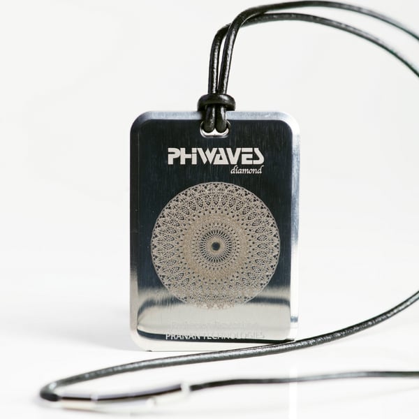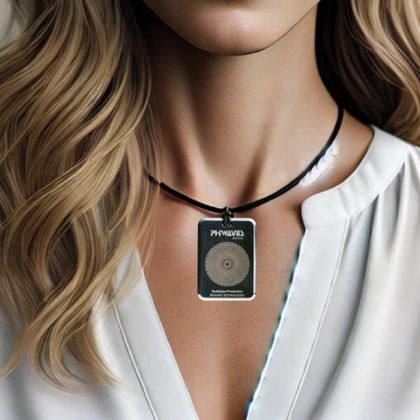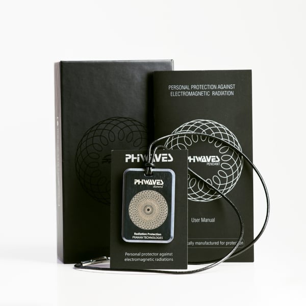 Dispositivo de protección frente a la radiación electromagnética PHIWAVES 5G Pendant. Incorpora tecnología Pranan basada en nanodiamantes. Colgante portátil diseñado para ofrecer protección personal frente a la exposició