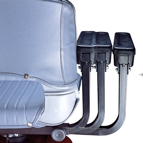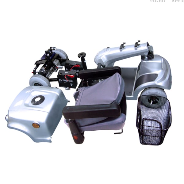 - Scooter altamente maniobrable con asiento giratório y apoyabrazos abatible. Ideal para uso exterior. Amortiguación trasera.