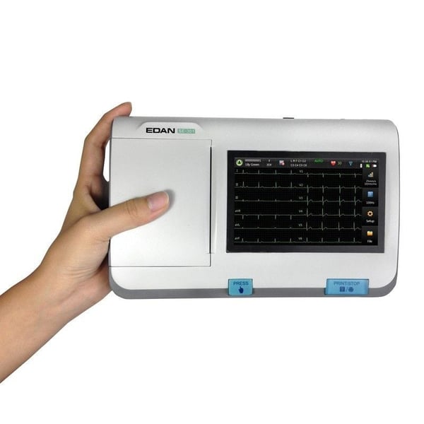 El Electrocardiógrafo de 3 canales de Edan es de gama alta y cuenta con tres posiciones: manual, automático o ritmo.