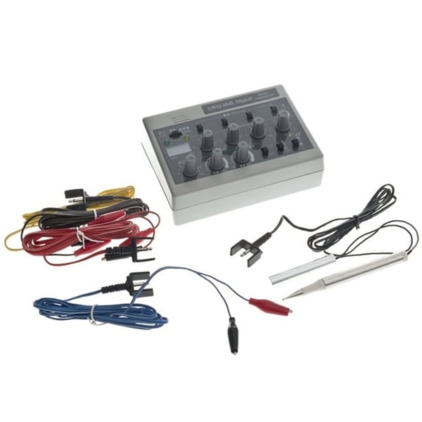 El modelo AWQ-104B es una de las unidades más potentes, cuenta con 4 salidas para estimulación y una quinta salida APD / E-E, que funciona como buscapuntos y como salida para estimulación, haciendo por tanto que el aparato tenga un número total de 5 canales de salidas