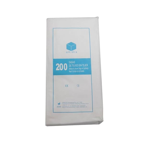 Gasa Tejido sin Tejer no estéril: Abierta 20 x 20 cm, Plegada 10 x 10cm (200 unidades)