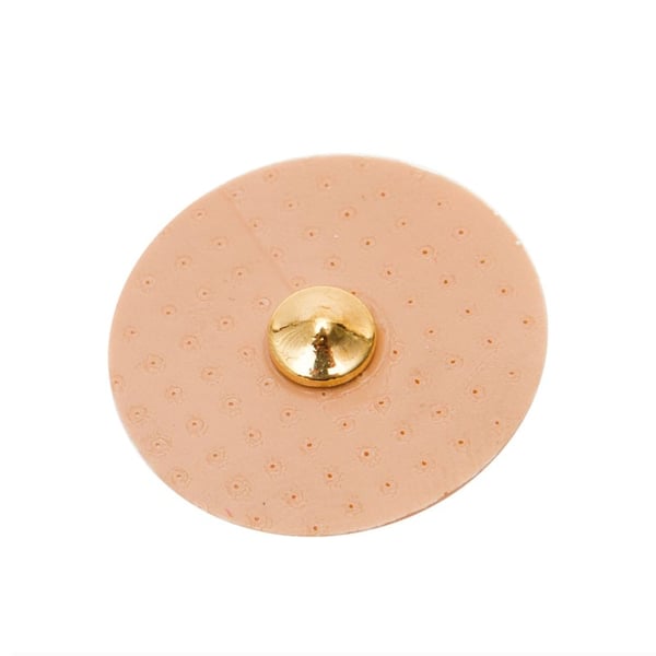 Imanes bañados en oro (800 Gaus) sobre adhesivos color beige. En la cara orientada al cuerpo (polo sur) el imán tiene forma cónica achatada y en el centro presenta una elevación para producir una estimulación extra.
