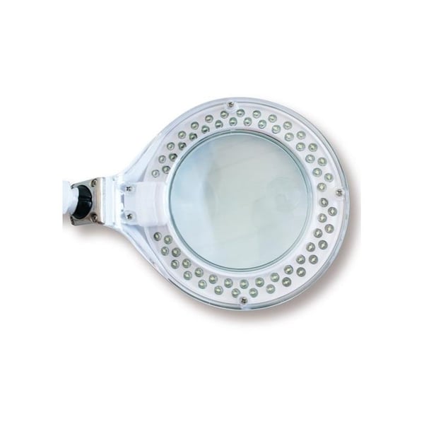 Esta lámpara de sobremesa con base está especialmente indicada para examinar piedras o para realizar cualquier trabajo de precisión. De reducidas dimensiones y diseño ergonómico, consta de una lente bifocal de alta calidad con 3 dioptrías (1,75x) y 100 mm de diámetro. Incluye una pequeña lente de aumento de 12 dioptrías (4x). Genera una luz fría anular con leds de luz Daylight sin producir sombras ni brillos. Es de bajo consumo y tiene una baja emisión de calor. Dispone de una tapa abatible protectora para la lente. Cuando no se usa, la lupa toma la apariencia de una lámpara normal de atractivo diseño.